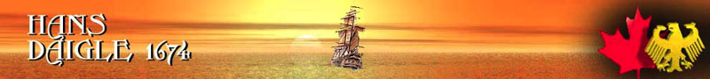 In 1674 Hans Daigle from Vienna became a noted Voyageur, Coureur de Bois and fellow adventurer with Radisson and Grosseilliers. They helped open up Canada's interior and enlarge the fur trade into Hudson Bay.By the way, speaking of Hudson Bay, did you know that the Hudson Bay Company was founded in 1670 by Prince Ruprecht or Rupert the son of the German Elector, Friederich the 5th von der Pfalz. The Pfalz is commonly known in english as the "Palatinate" region of Germany.